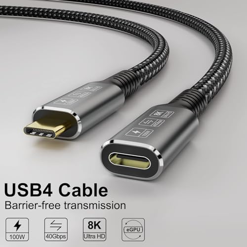 Excefore - كيبل USB4 8K 0.8 متر لثاندربولت 4 متوافق مع USB نوع سي ذكر الى انثى تمديد UHD 8K@60Hz 100 واط شحن 40Gbps نقل بيانات SSD خارجي eGPU USB-C