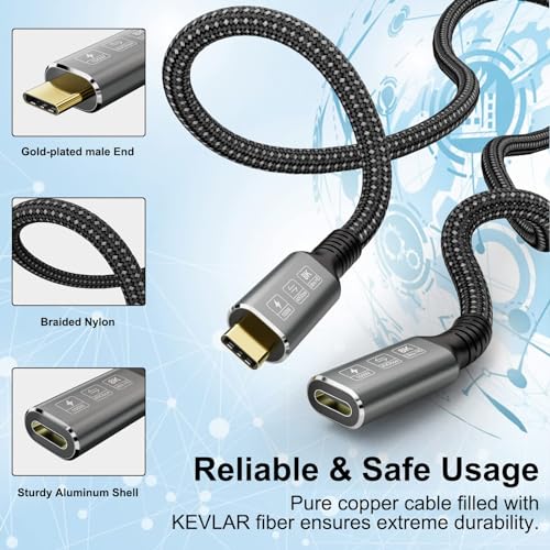 - ⚡【تصميم متين】كابل يو اس بي 4 هذا مع موصل مطلي بالذهب، هيكل من الألومنيوم المتين، نايلون مضفر، كيبل تمديد USB4 ذكر إلى أنثى يحل مشكلة أن بعض كابلات جهازك من ذكر إلى ذكر قصيرة جدًا، خالية من العوائق، بدون اتصال أو نقل مسافة.