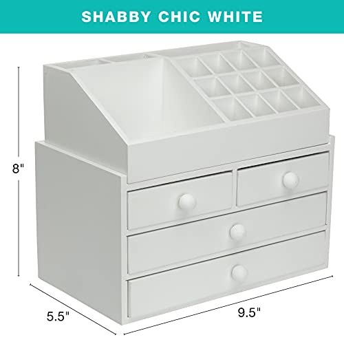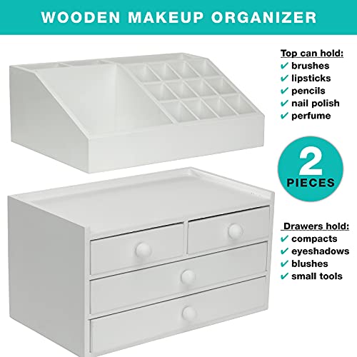 EXCELLO GLOBAL PRODUCTS - منظم مكياج خشبي مكون من قطعتين مع 4 أدراج و16 مساحة تخزين من اكسيللو جلوبال برودكتس، مقاس 24 × 14 × 20 سم، أبيض