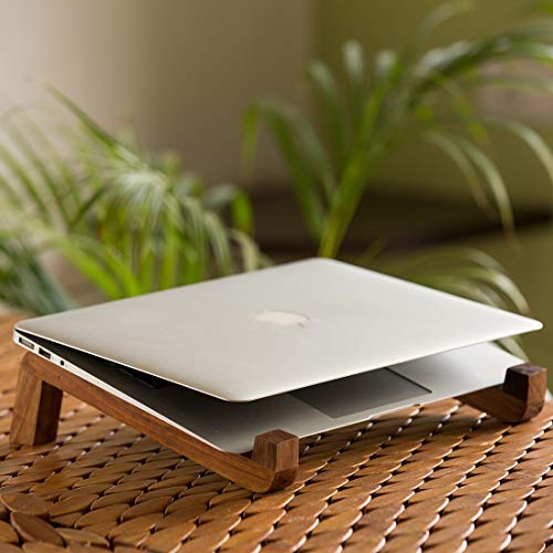 ExclusiveLane - حامل لاب توب براوني لاب مصنوع يدويًا من خشب الشيشام من اكسكلوسيف لاين، مناسب للمكتب للاستخدام المنزلي، حامل لاب توب عمودي للسرير قابل للتعديل