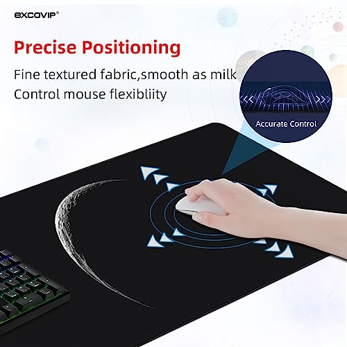excovip - لوحة ماوس ألعاب كبيرة ولوحة مفاتيح مضادة للانزلاق مع حواف مخيطة من اكسكوفيب - 700 × 300 ملم تصميم قمر - موديل 0046 ميموري فوم