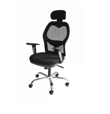 Generic - كرسي مكتب شبكي تنفيذي بظهر مرتفع، مسند راس ومساند للذراعين قابلين للتعديل، تصميم دوار مريح، قاعدة من الكروم، اسود