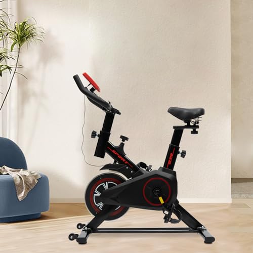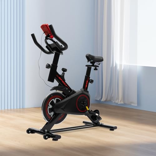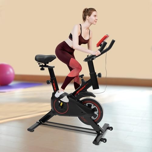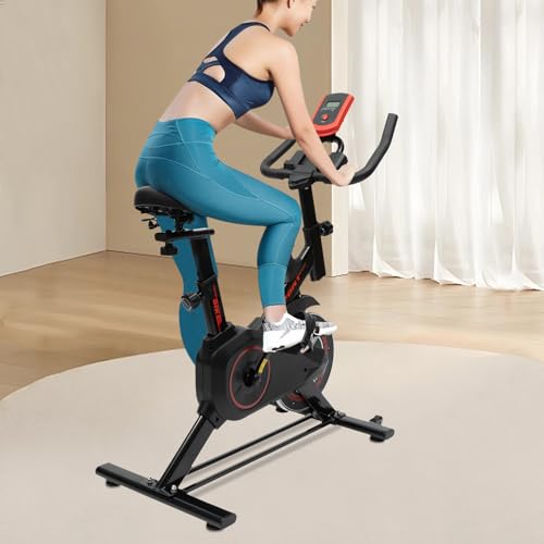 panfudongk - دراجة تمارين لياقة بدنية منزلية لتمارين اللياقة البدنية، دراجة ثابتة للمنزل باطار ستيل قوي، مقاومة قابلة للتعديل، شاشة الكترونية، عجلة موازنة 4 كجم