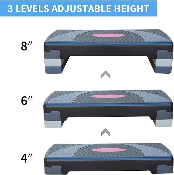 - 4 ارتفاعات/3 أمبير ارتفاع: يأتي جهاز التمارين الرياضية مع 4 رافعات، ارتفاع قابل للتعديل من 4 انش 6 انش إلى 8 انش لزيادة التحدي، مثالي للتمارين الهوائية وتمارين القلب والقوة لتعزيز عضلاتك وحرق السعرات الحرارية وفقدان الوزن وتحسين القلب والأوعية الدموية.