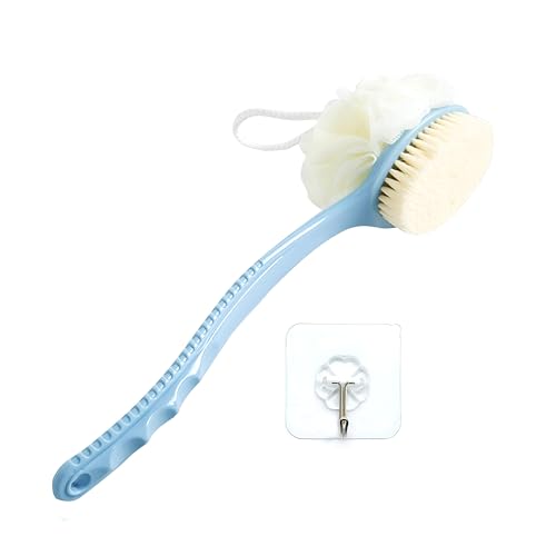 - 【تصميم بمقبض طويل】 المقبض الطويل غير القابل للانزلاق بطول 14.17 بوصة لفرشاة الحمام يجعلك تصل بسهولة إلى الظهر ولكتفين والمناطق التي يصعب الوصول إليها وتنظيفها بسهولة.