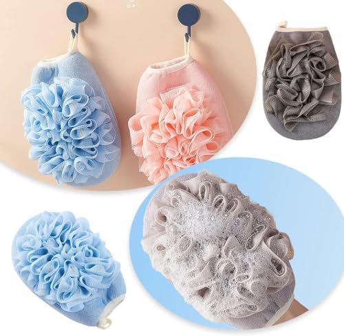 Generic - جوانتي تقشير مع ليفة إسفنجية لتنظيف الجسم، إسفنجة استحمام مزدوجة الجوانب للاستحمام للنساء والرجال، قفازات تقشير الجلد الميت للجسم (قطعة واحدة، متعدد الألوان)
