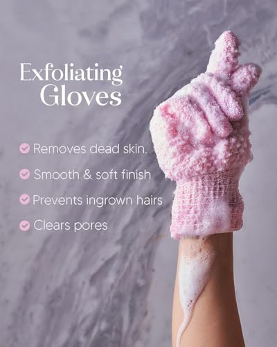 - تقشير فعّال: قفازات مصممة خصيصاً لإزالة خلايا الجلد الميتة بلطف من الوجه والجسم