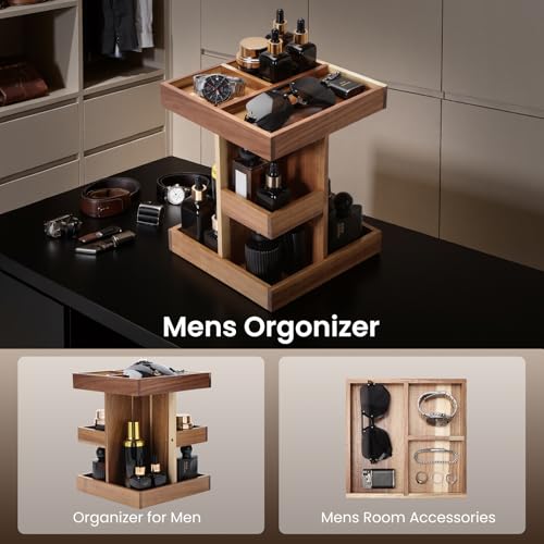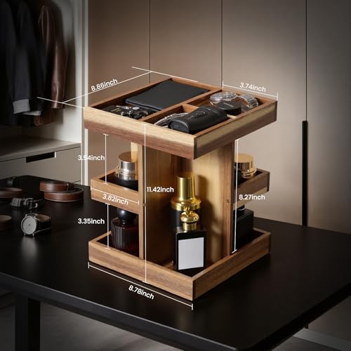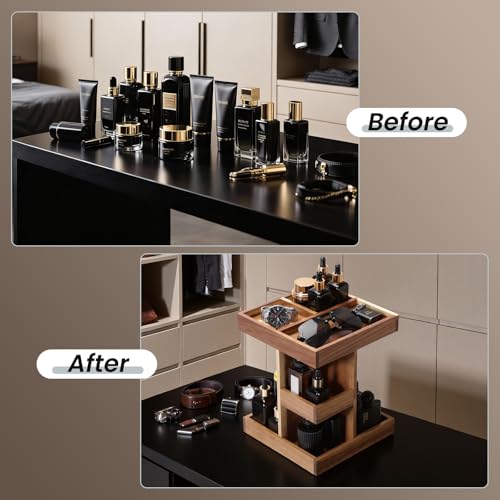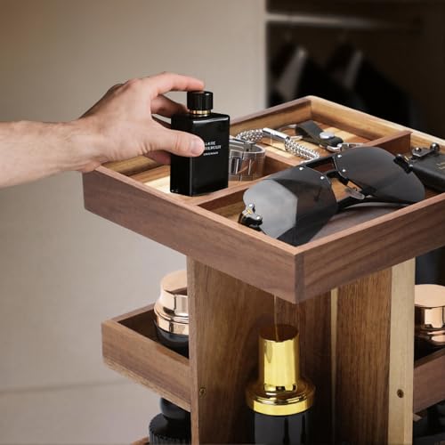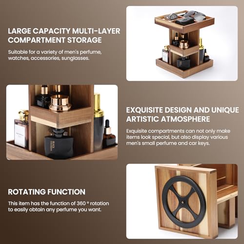 EXIN DECHEN - منظم وحامل كولونيا للرجال، رف عطر خشبي من 3 طبقات مع دوار، منظم مكتب، هدايا للأب من الزوجة، هدية عيد ميلاد الزوج والصديق، هدايا عيد الحب للرجال من اكسين ديشين