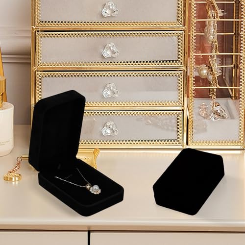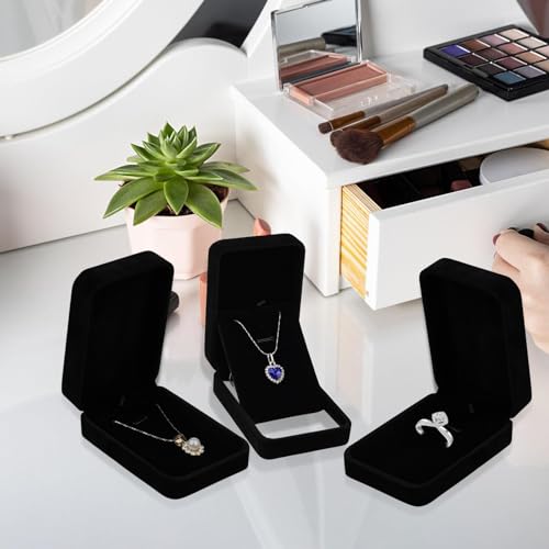 - مخمل أسود كلاسيكي: صندوق هدايا مجوهرات: صندوق هدايا المجوهرات الكلاسيكي المصنوع من المخمل الأسود لا يبدو غامضًا ومحتفلاً به فحسب، بل يبرز أيضًا اللمعان الجميل لمجوهراتك بفخامة رقيقة.