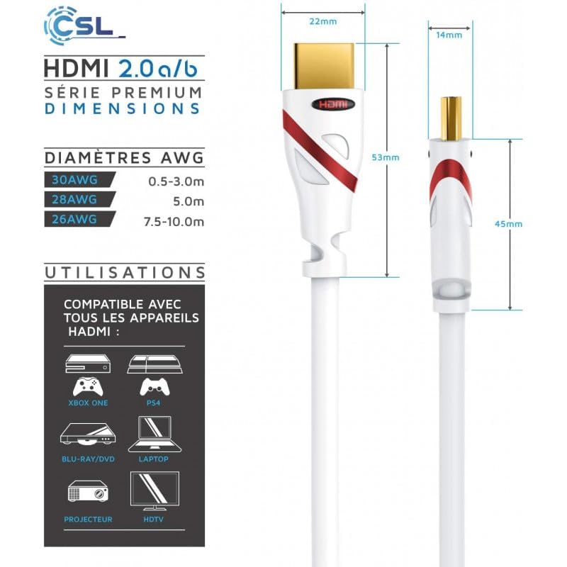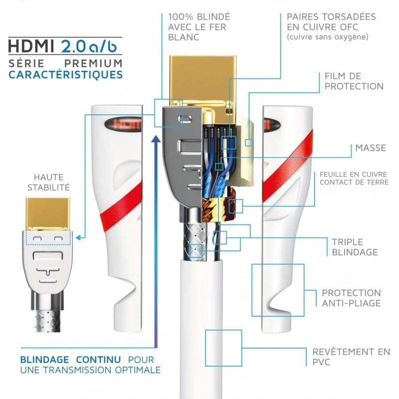 - كابل HDMI 2.0 عالي السرعة بسرعة 18 جيجابايت في الثانية - يصل إلى 18 جيجابايت في الثانية من معدل نقل البيانات عالي السرعة يمنحه مساحة كافية لحمل فيديو بدقة 4K بسرعة تصل إلى 60 إطارًا في الثانية