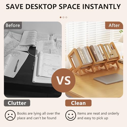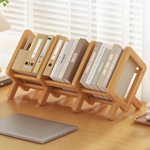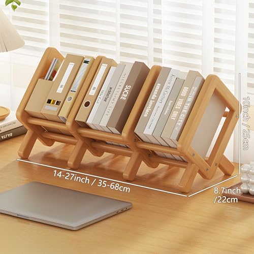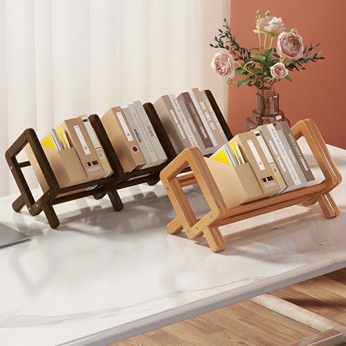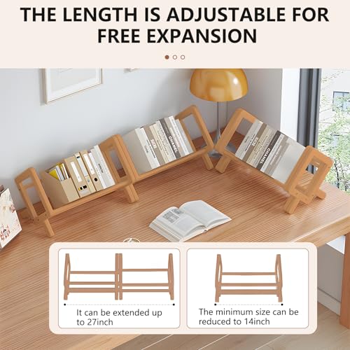 VACONICO - منظم رف كتب لسطح المكتب قابل للتوسيع، رف تخزين كتب خشبي لسطح الطاولة، خزانة كتب مائلة قابلة للتعديل لعرض الكتب/الاقراص المضغوطة/المجلات (برلي وود، طول 27 انش)
