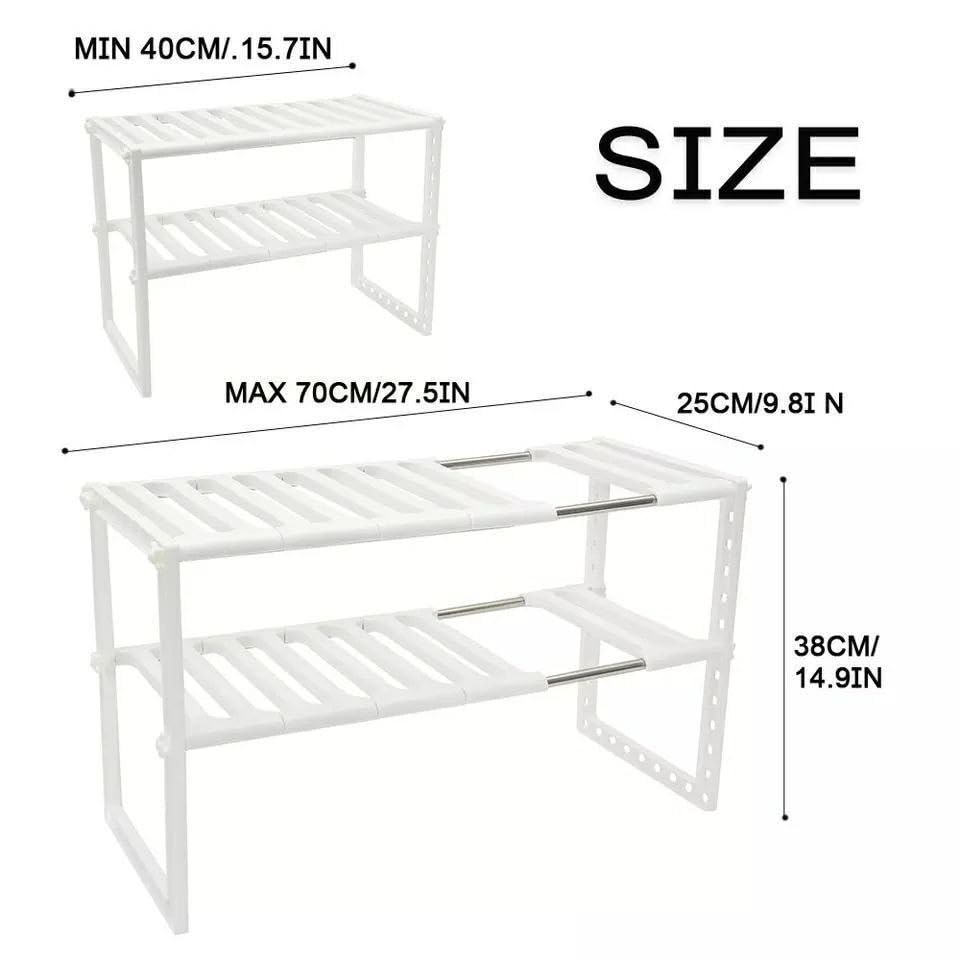 - متعدد الاستخدامات: مثالي لتنظيم الأواني والصحون وأدوات المطبخ، يمكن استخدامه تحت الحوض أو داخل الخزائن