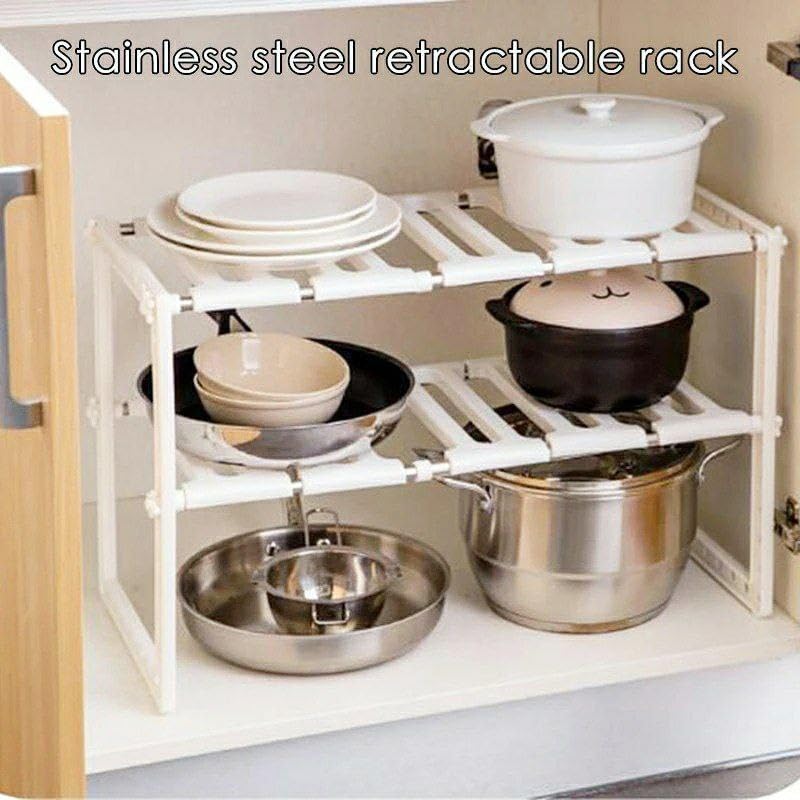 Generic - رف مطبخ قابل للتوسيع من الستانلس ستيل متعدد الاستخدامات لتنظيم الأواني والصحون داخل الخزائن – رف قابل للتعديل لتوفير المساحة وتخزين أدوات المطبخ بشكل منظم وأنيق