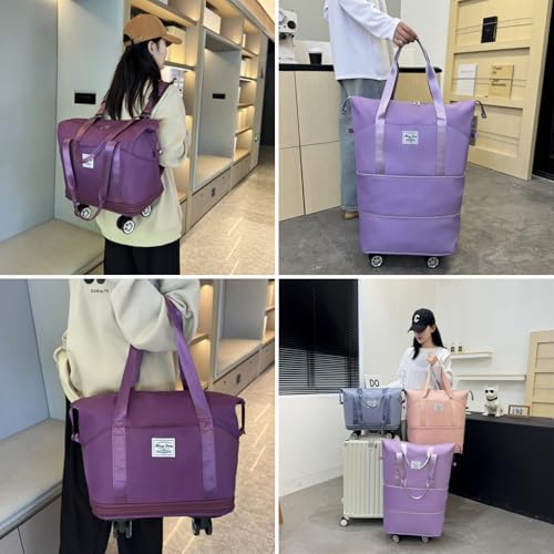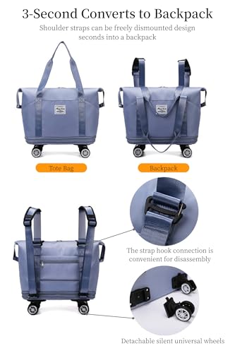 - 【استخدام قابل للتحويل ومتعدد الوظائف】يمكنك التبديل بسهولة بين شنطة يد كبيرة توت بعجلات وشنطة ظهر. تسمح أحزمة الكتف القابلة للإزالة والتعديل بحملها بدون استخدام اليدين، مما يجعلها مثالية للسفر في المطار أو زيارات المستشفى أو التنقل اليومي.