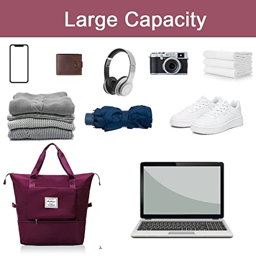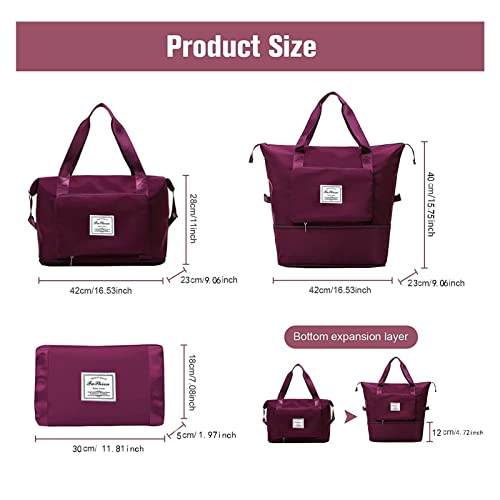 Generic - شنطة سفر قابلة للتوسيع وقابلة للطي بسعة كبيرة لعطلة نهاية الاسبوع يد دفل وخفيفة ومقاومة للماء بجيوب منفصلة للاغراض الجافة والرطبة أحمر One Size للبالغين من الجنسين