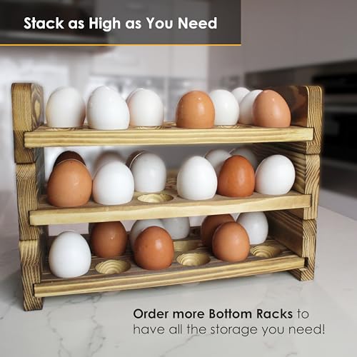 - حامل بيض خشبي قابل للتكديس: صينية البيض الخشبية هذه عبارة عن حامل بيض قابل للتكديس لا يفقد أناقته. وهو يختلف عن حامل البيض الحلزوني أو حامل البيض اللولبي أو حامل البيض الخشبي البسيط أو حامل البيض المعدني. تذكر إضافة المزيد من الرفوف السفلية لحمل ما يصل إلى 72 بيضة أو أكثر!