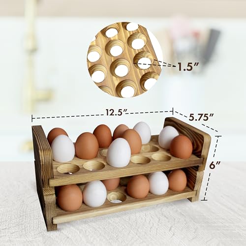 GUI'S CHICKEN COOP - حامل بيض خشبي قابل للتوسيع والتكديس مناسب لديكور المطبخ الريفي، رف بيض مدمج مكون من قطعتين لسطح العمل يتسع لعدد 36 بيضة من جويز تشيكين كوب (رف مزدوج)