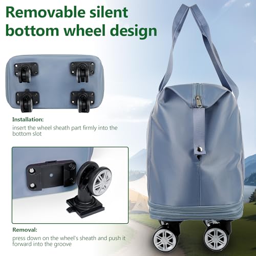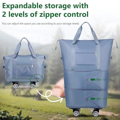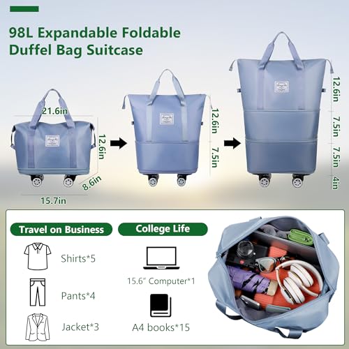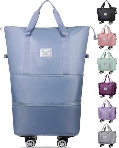 wymulot - شنطة دفل قابلة للتوسيع من ويمولوت، شنطة سفر قابلة للطي مع عجلات، شنطة سفر لعطلة نهاية الاسبوع للحمل مع مساحة تخزين، شنطة سفر كبيرة لرحلات العمل والتخييم واللياقة البدنية (ازرق ضبابي)