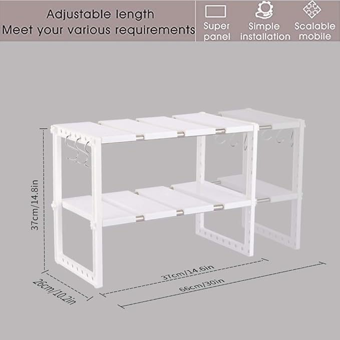 - 【قابل للتوسيع بحرية】 يمكن تمديد طول القضبان المصنوعة من الفولاذ المقاوم للصدأ من 37 إلى 66 سم حسب الحاجة الفعلية. يلبي الاستخدامات المختلفة في الحياة اليومية. مقاس المنتج: الطول 37-66 سم × العرض 26 سم × الارتفاع 37 سم.