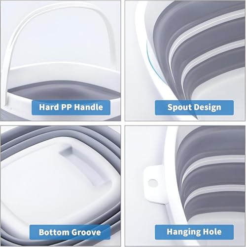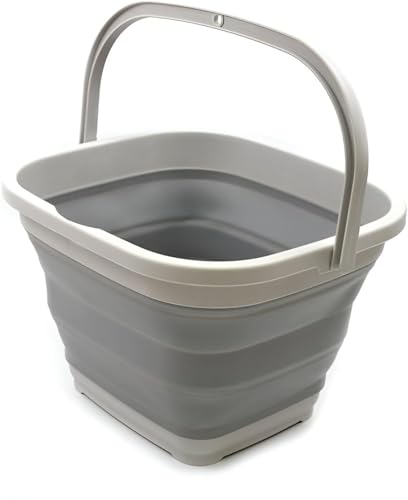 Generic - وعاء سيليكون متين وقابل للطي وخالي من BPA مع مقبض مقوى للتخييم عن بعد من اكسبيديشن (رمادي، 10 لتر)