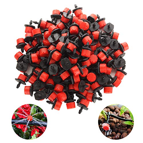 EXPERY - 150 قطعة من مرشات الري القابلة للتعديل 1/4 انش، مرشات الري بالتنقيط الدقيقة لنظام الري واسرة الزهور وحدائق الخضروات والعشب وحدائق الاعشاب من اكسبيري