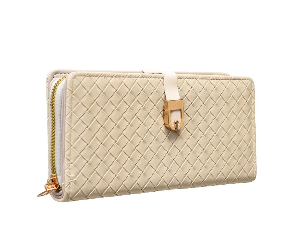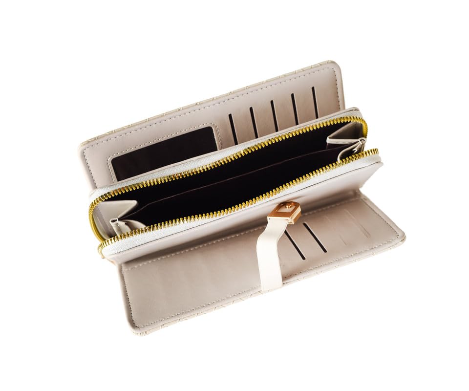 Express Footwear - محفظة نسائية فاخرة متعددة الوظائف قابلة للطي بسحاب بسعة كبيرة لحمل العديد من البطاقات والجوال وحامل البطاقات من اكسبرس فوتوير - بيج - 127-320