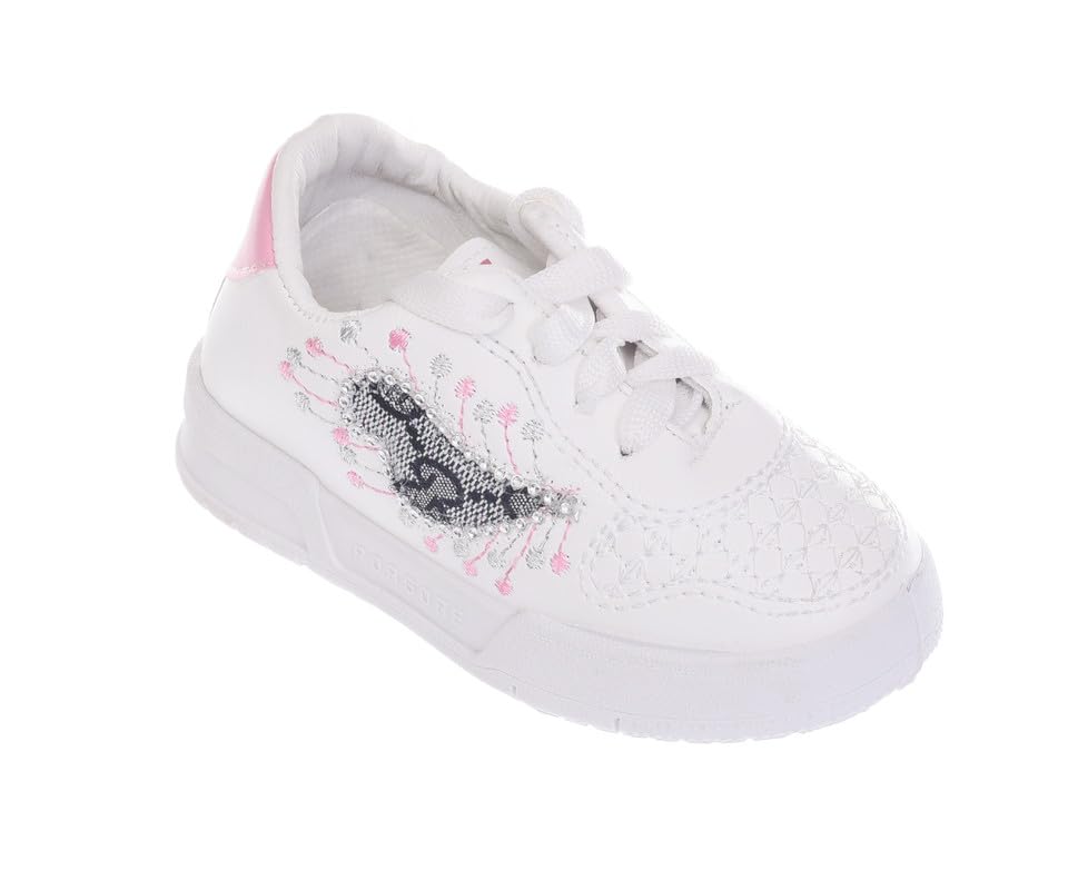 Express Footwear - حذاء رياضي من الجلد برباط للمشي والأماكن الخارجية للبنات من اكسبرس كيدز مطرز على الجانب