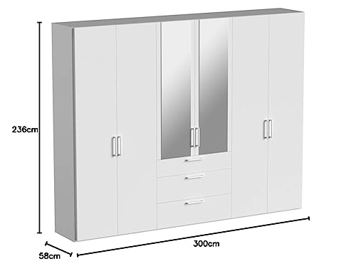- الهيكل: أبيض (بولار وايت)، الجزء الأمامي: البابان الأيسر والأيمن أبيض/الأوسط يغلق بمرآة وثلاثة أدراج بعرض 1.00 متر باللون الأبيض