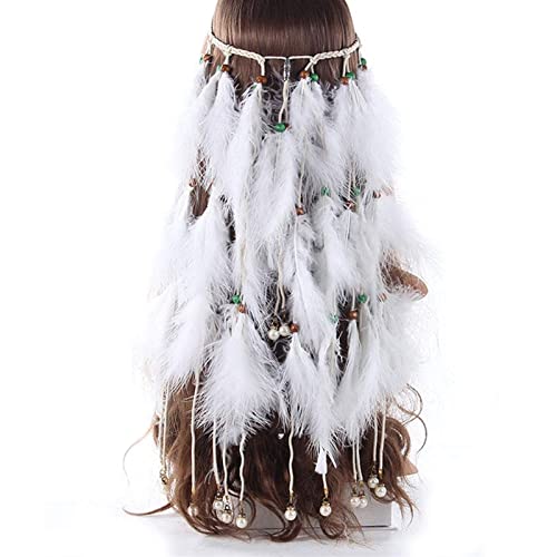 Generic - شريط رأس رائع من الريش للمهرجانات من اكسيويسيت، غطاء رأس بتصميم قبلي بوهو قابلة للتعديل لحفلات الزفاف، اكسسوارات شعر هندية