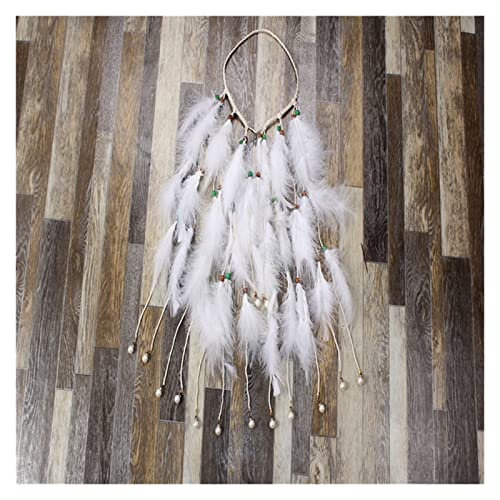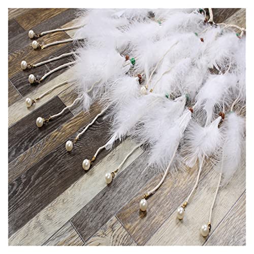 - شريط الرأس المصنوع من الريش الأبيض والخرز الخشبي واللؤلؤ الصناعي وحبل مضفر.