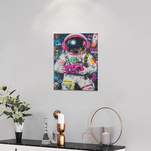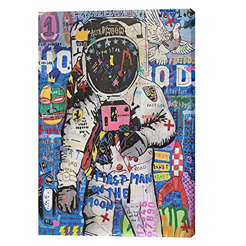 exroozy - لوحة فنية جدارية بتصميم رائد فضاء لبانكسي مستوحى من ثقافة البوب جرافيتي للشوارع صور قماش مؤطرة ديكور منزلي لغرفة النوم وغرفة المعيشة والمكتب 41×61 سم متعدد الألوان