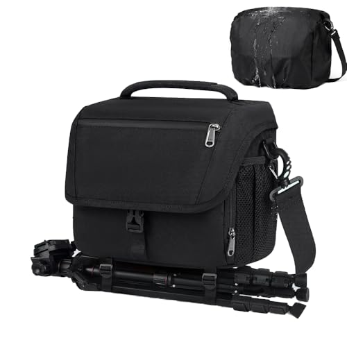 Exrp - شنطة كاميرا DSLR/SLR/SLR بدون مراية مع حامل ثلاثي القوائم مقاومة للماء، شنطة كاميرا كروس للمصورين مع غطاء مطر لكانون ونيكون وسوني وفوجي