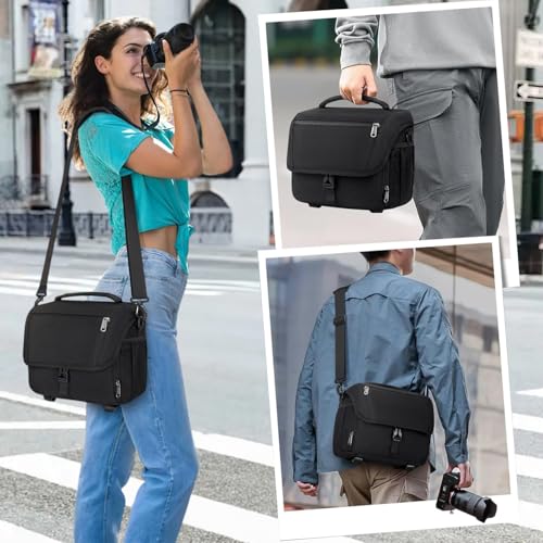 - 【حماية 360 درجة】يمكن للبطانة المخملية الناعمة والبطانة السميكة لحقيبة الكاميرا التي تمر بالجسم حماية الكاميرا والأجهزة الأخرى بشكل فعال من الصدمات والخدوش والأضرار المحتملة الأخرى. مع سحاب مقاوم للماء وتصميم غطاء قلاب لمنع الكاميرا من السقوط، سهل الفتح أو الإغلاق ويحمي الكاميرا من رذاذ الماء أو المطر. تأتي مع غطاء للمطر، مما يوفر حماية مزدوجة لحقيبة الكاميرا الصغيرة.
