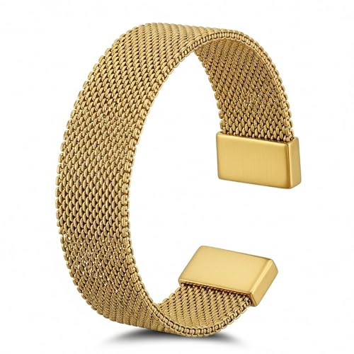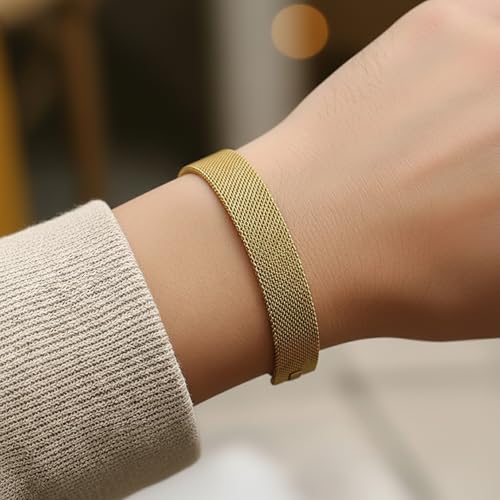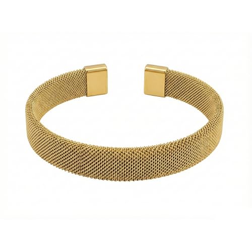 Generic - سوار شبكي عريض من الستانلس ستيل بلون ذهبي من اكسوار، مجوهرات بسيطة