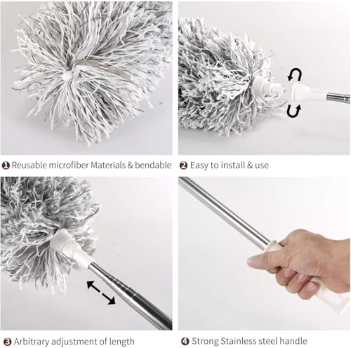 Generic - هلاسة مروحة و زعافة غبار مايكروفايبر قابلة للتمديد – مع يد فولاذ مقاوم للصدأ طويلة جدا 2.5 متر خفيفة، قابلة للغسل، وسهلة الاستخدام