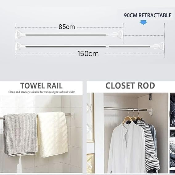 Generic - قضيب ستارة دش قابل للتمديد،الفولاذ المقاوم للصدأ، بدون حفر، قضيب ستارة دش عصري للحمام والخزانة والمدخل (85-150 سم) قطعة واحدة