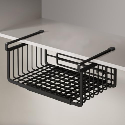 Janebert - سلة تخزين قابلة للتمدد تحت الرف، سلال معلقة تحت الخزانة لتنظيم رفوف الخزانة وخزانة المطبخ وخزانة المكتب ورف الكتب موفرة للمساحة شديدة التحمل منزلقة (اسود، قطعة واحدة)