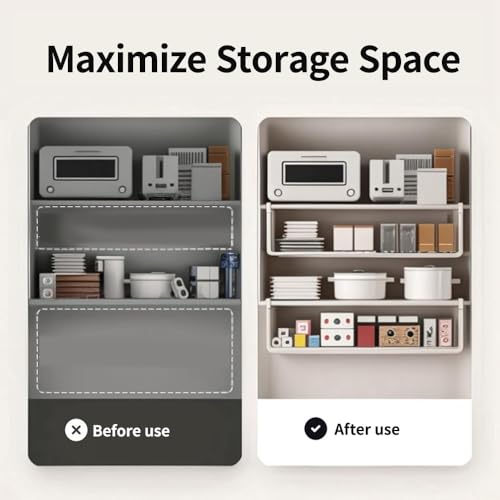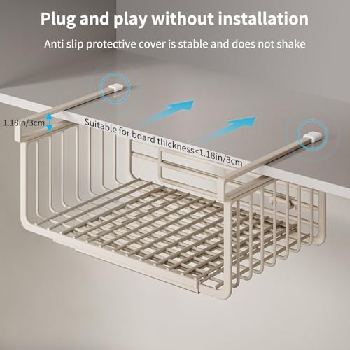 - 【سلة تخزين تحت الرف】 تنزلق السلة فوق خزانة المؤن والخزانة وأرفف الخزانة لخلق مساحة تخزين إضافية؛ أضف مساحة تخزين على الفور إلى أي رف موجود واستفد من المساحة غير المستخدمة.