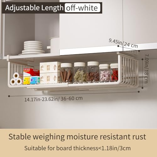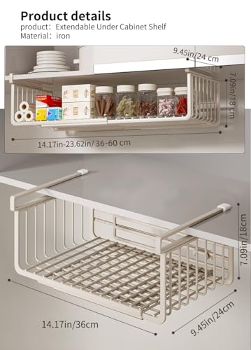 - 【مقاس قياسي】 الأبعاد: 14.17 طول × 9.45 عرض × 7.09 ارتفاع انش، يمكنك وضع سلة التخزين تحت الرف بأي حجم خزانة تقليدي، النطاق القابل للتعديل هو 14.16-23.62 انش.