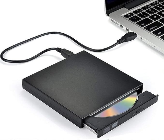Generic - محرك اقراص سي دي في دي خارجي، قارئ اقراص بصرية محمول بمنفذ USB، تصميم اسود رفيع، متوافق مع اللاب توب والكمبيوتر المكتبي