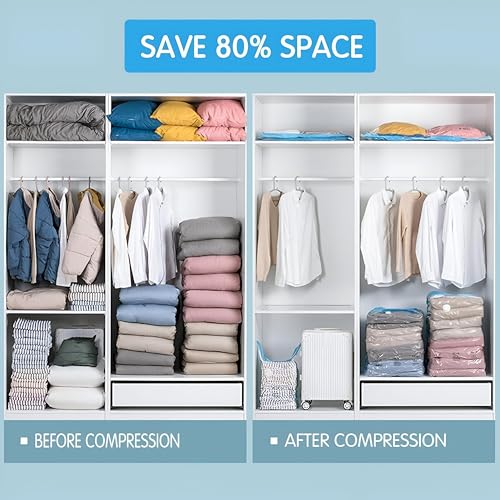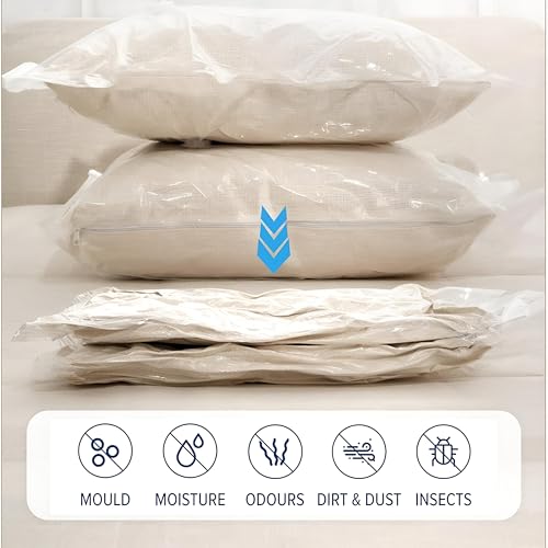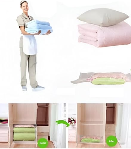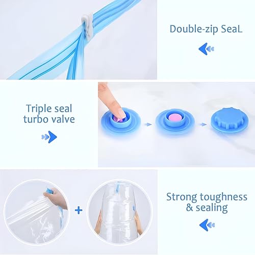 - ما عليك سوى وضع أغراضك في الحقيبة وإغلاقها وإزالة كل الهواء باستخدام مضخة تفريغ تتناسب مع الصمام الموجود في الأكياس. يؤدي هذا إلى الضغط، مما يسمح لك بتخزينها بشكل أكثر راحة بغض النظر عن قيود المساحة.