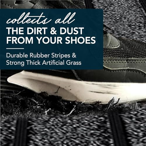 - صائد الأوساخ المثالي: يجمع تصميمنا المبتكر بين العشب الصناعي عالي الجودة والأشرطة المطاطية المتينة من أجل سجادة باب خارجية فعالة لإزالة الطين. سجادات الباب الأمامي للأماكن الخارجية ستحافظ على عتبة بابك نظيفة ومرتبة.