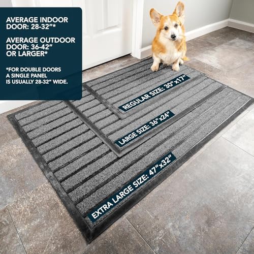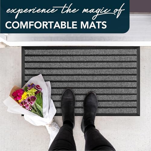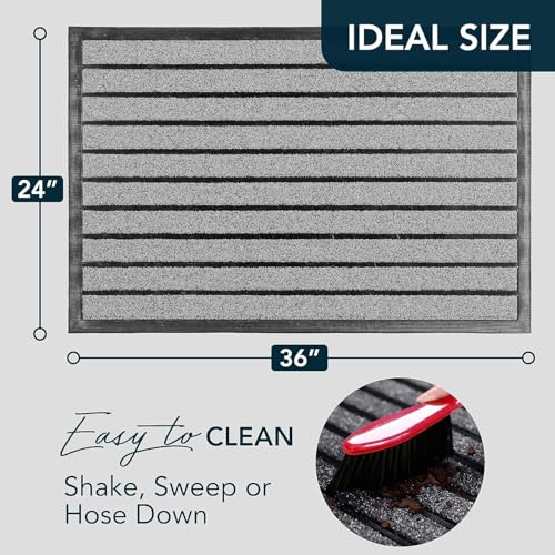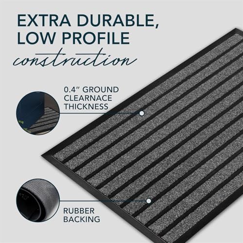 Generic - دواسة باب متينة للغاية - سجادة ترحيب خارجية لحبس الاوساخ - غير قابلة للانزلاق للمدخل الداخلي والخارجي - دواسة باب امامية منخفضة (36 انش × 24 انش، رمادي فاتح)