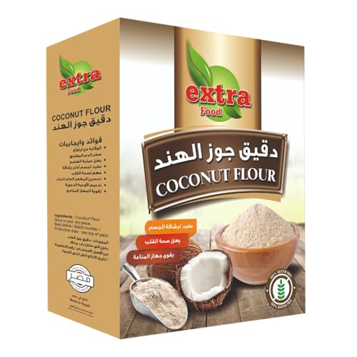 - خالٍ من الغلوتين: دقيق جوز الهند من اكسترا فودز هو بديل لذيذ وخالي من الغلوتين لدقيق القمح التقليدي..