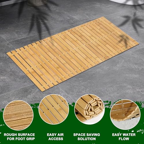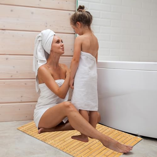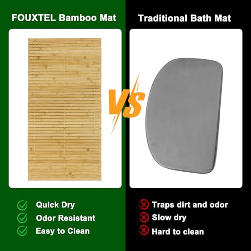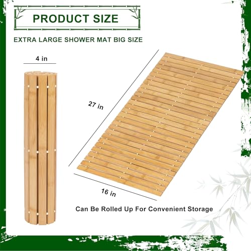 FOUXTEL - دواسة استحمام من خشب البامبو بحجم كبير جدًا لداخل الدش، دواسة استحمام خشبية كبيرة مانعة للانزلاق، سجادة استحمام طولية طويلة من اكسسوارات الحمام، سجاد سريع الجفاف للاستحمام، مقاس 68.6 سم × 40.6 سم
