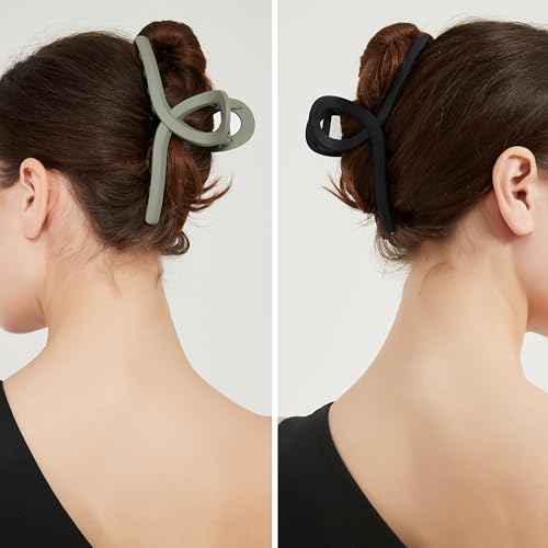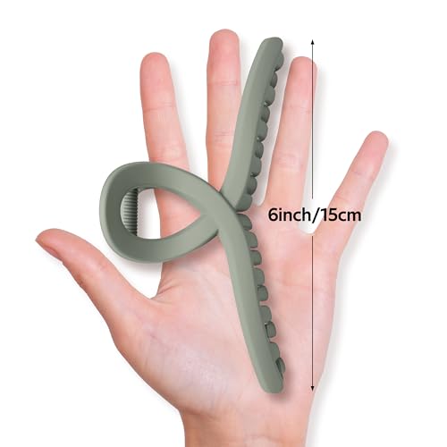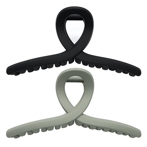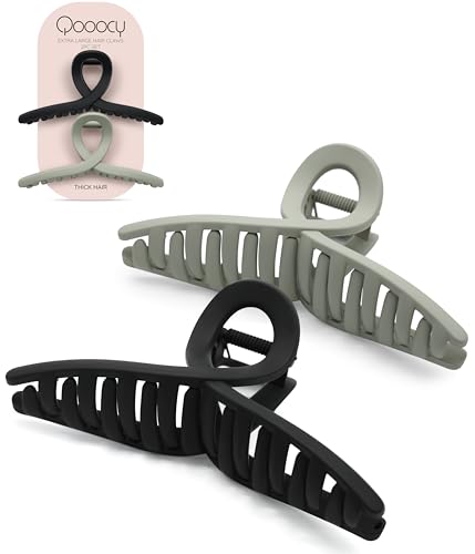 Qooocy - مشابك شعر مخلبية كبيرة جدًا للشعر الكثيف والطويل، مشابك جامبو مقاس كبير جدًا جدًا، مشابك شعر فراشة غير لامعة وغير قابلة للانزلاق للنساء، مشبك فك كبير قوي التثبيت، أسود وأخضر رمادي، عبوة من قطعتين