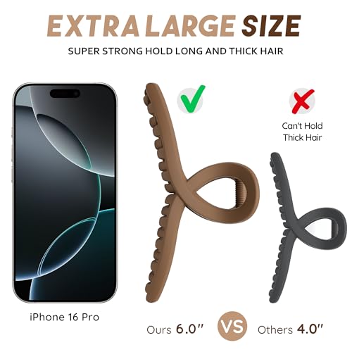 - مقاس كبير جدًا: المشابك 14.7 × 6.4 سم. هذه المشابك كبيرة الحجم - تحمل كل شعرك الكثيف. تحتوي على أسنان داخلية لتثبيت أكثر أمانًا. هذه المشابك تتميز بالحجم الكبير. متينة وسميكة، فهي تثبت شعرك في مكانه بشكل جميل. فقط قم بتمديد الأسنان حول شعرك وستحفاظ عليها في مكانه.
