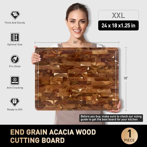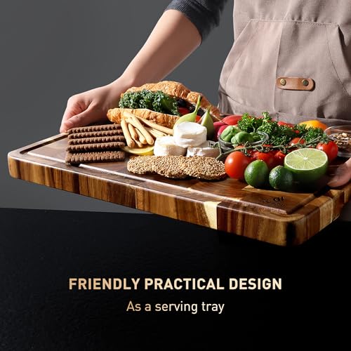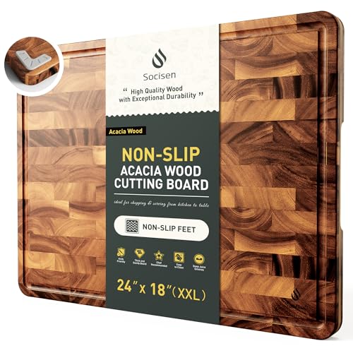 Socisen - لوح تقطيع حبوب كبير للغاية للمطبخ مع ارجل مانعة للانزلاق، لوح تقطيع متقلب من خشب الاكاسيا شديد التحمل مع اخدود عصير ومقبض لوح تقطيع فاخر مصنوع يدويا للحوم والخضروات