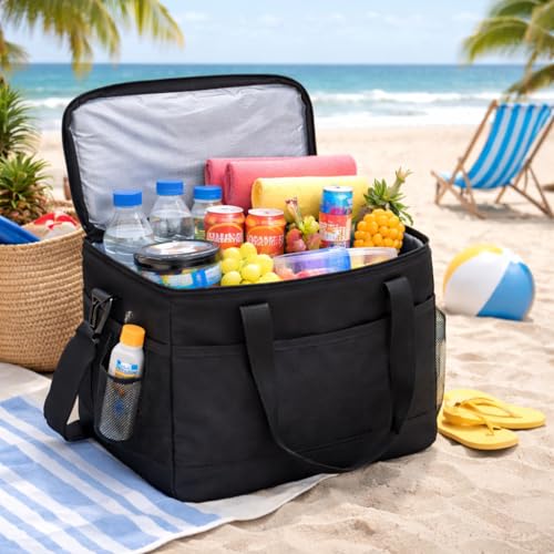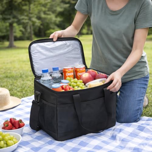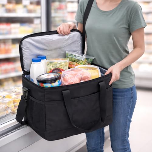 Generic - شنطة بقالة حرارية معزولة مقاس XL 47×27×30 سم، سعة 40 لتر بسحاب اغلاق قابلة للطي لتخزين الطعام الساخن والبارد والنزهات والسفر والتسوق