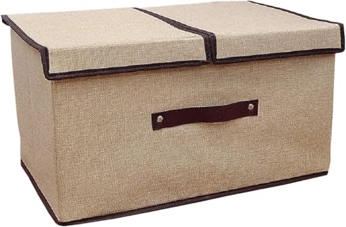 Generic - صندوق تخزين كبير جدًا قابل للطي من الكتان مقاس 50 × 30 سم مع مساحات تخزين مزدوجة وغطاء - منظم قماش متين للملابس والمناشف والالعاب واساسيات المنزل